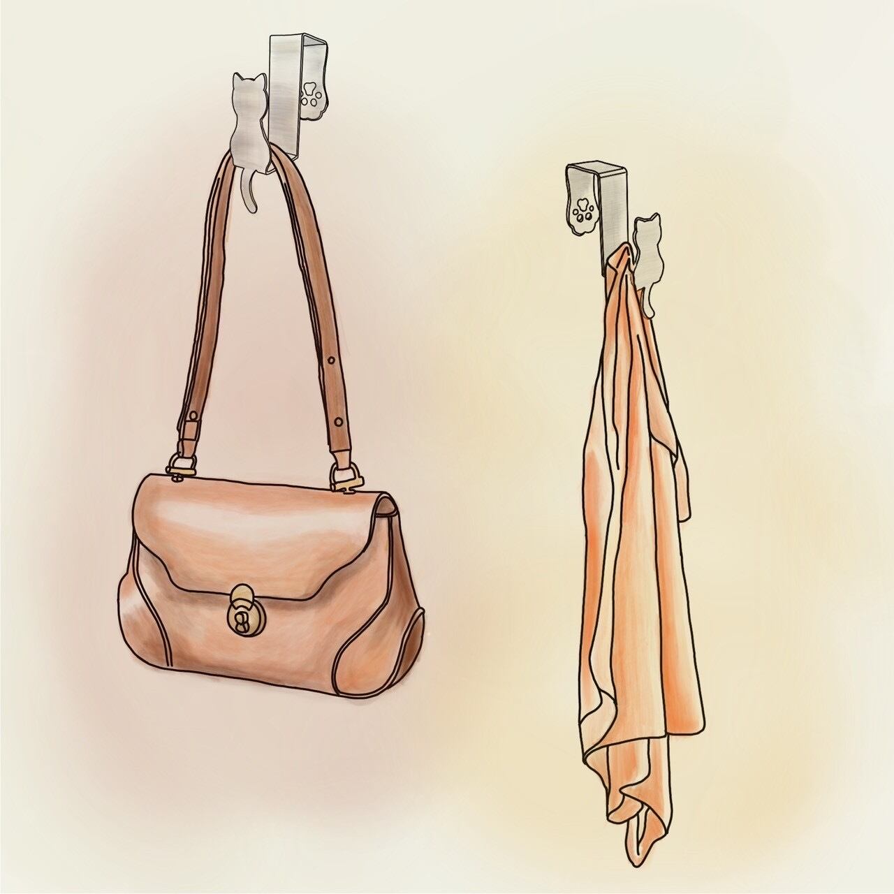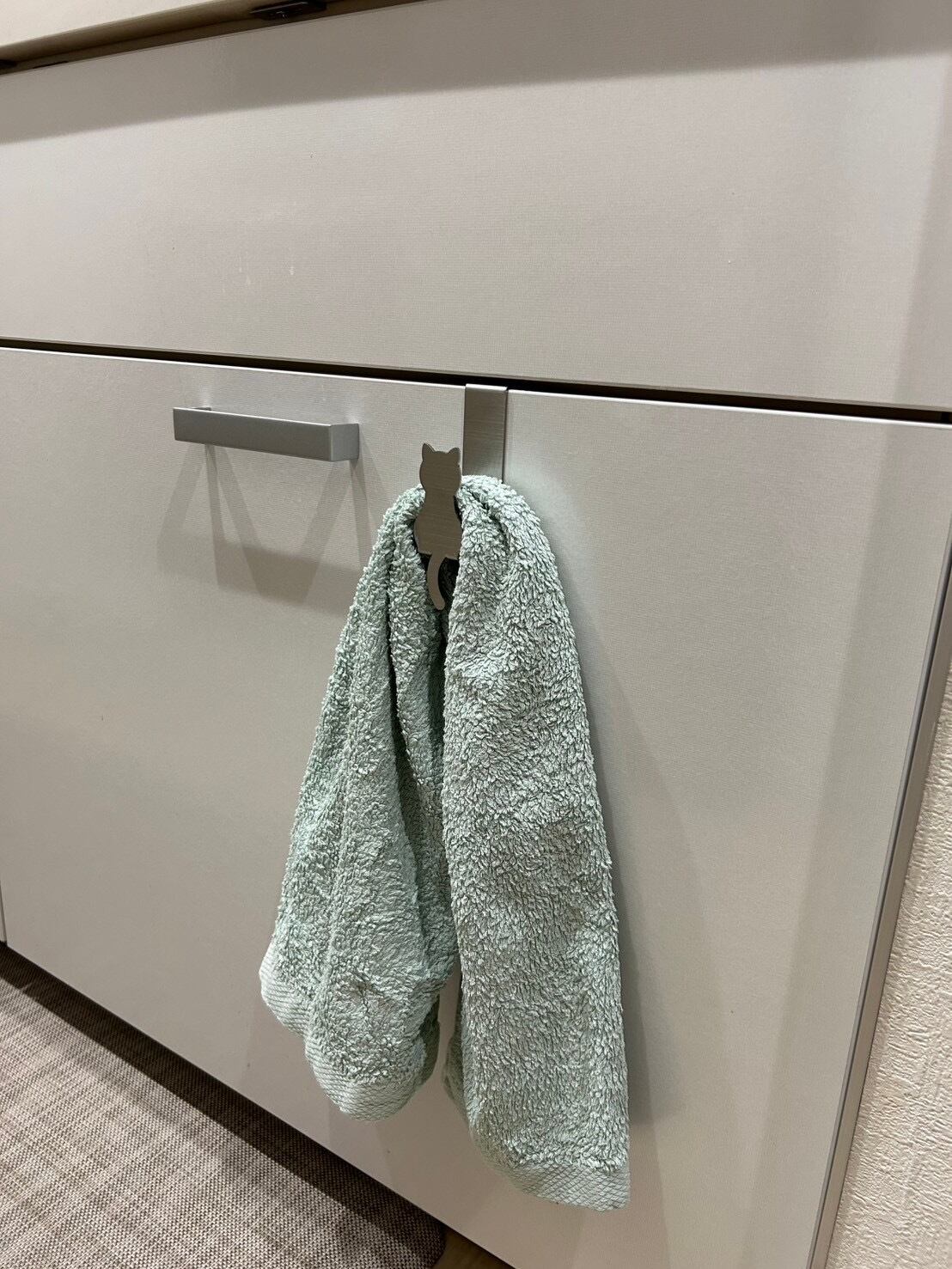 ねこ好きが考案し、ねこのデザインにこだわった一品です!ドアに引っかける部分もねこの手になっていて